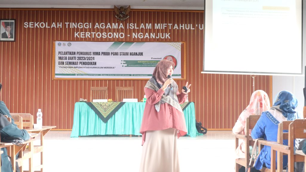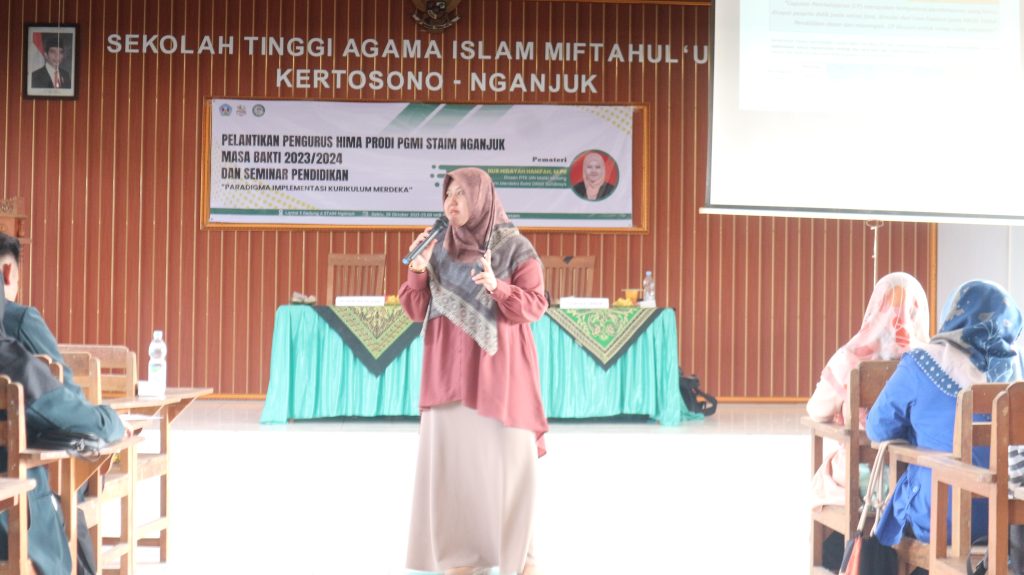 Sabtu 28 Oktober 2023, setelah dilaksanakannya pelantikan Pengurus HIMAPRODI PGMI masa bakti 2023/2024, dilanjutkan dengan Seminar Pendidikan Interaktif yang disampaikan oleh ibu Nur Hidayah Hanifah,M.Pd dosen FITK UIN Maulana Malik Ibrahim Malang sekaligus Pembina Kurikulum Merdeka Balai Diklat Surabaya.